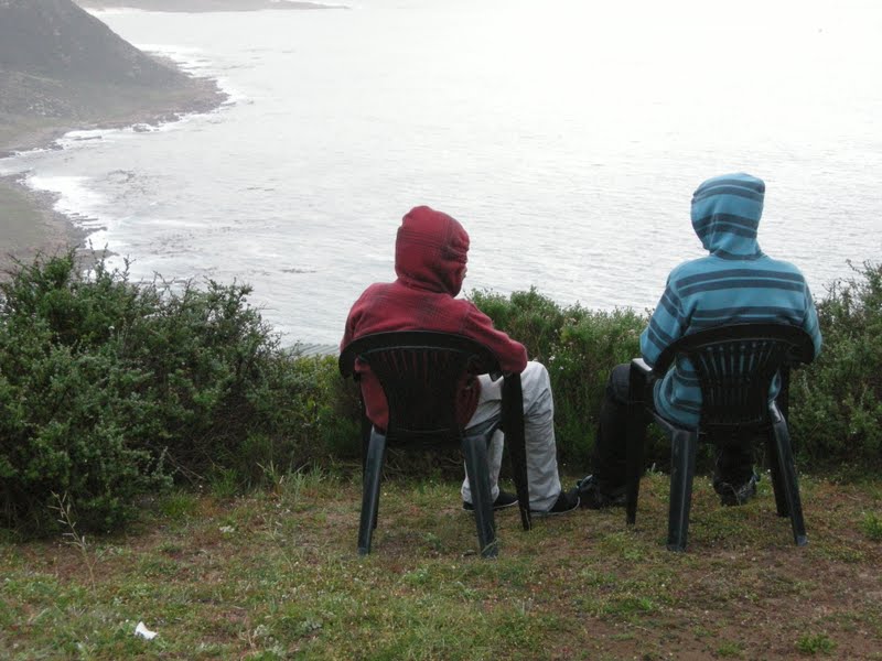 Then it was on to Buffels Bay, which has become a popular surfing site. Big waves rushing to the rocky shores, make this an ideal spot for surfers and onlookers alike. As one wave after another crashed down on the daredevil surfers, we made our way to Rooikrans: a gentle uphill that would take us to the carpark below the overnight huts. Then a deep breath by all and a final surge to the overnight huts where the kids proceeded to build themselves a shelter, while the adults prepared for a cold night.
